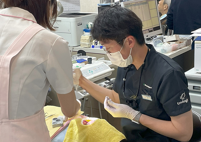 父親である院長とは今も友達のような親子関係です。子供のころから一緒に過ごす時間が多く、いろんな経験をさせてもらいました。自動車(モータースポーツ)やワインなど共通の趣味も院長の影響だと思います。院長から「歯科医師になれ。」と言われたことはありませんでしたが、院長の背中、診療する姿を見て自然に歯科医師の道を歩もうと思いました。今は同じ歯科医師である院長と私。院長は私のことを同じ職業、資格を持つ、一人の歯科医師として接してくれます。それにこたえられるようにこれからも頑張りたいと思っています。